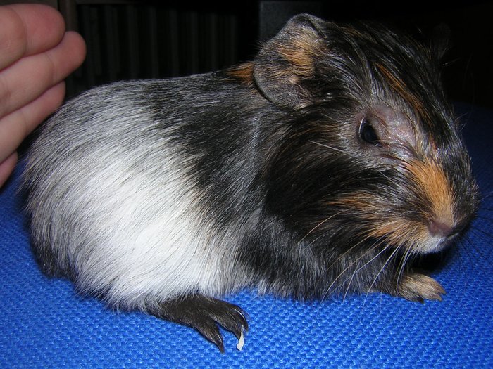 <-Tohle morče je napadeno svrabem,který ještě není "v plné síle"ještě tam nejdou moc vidět stroupky,pokud má Vaše morče svrab,či cokoli jiného,jděte ihned k veterináři